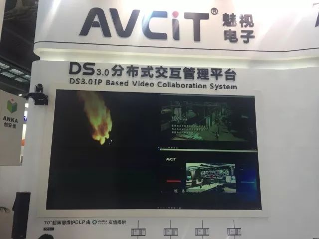 Viamax(纬而视科技)为魅视电子提供的是2×2 70寸全高清超薄前维护DLP显示单元,超乎想象的薄,整机厚度仅有555mm, 解决了长久以来,DLP大屏幕显示系统厚度过大的弊端。同时,超薄DLP采用1920×1080的Full HD物理分辨率,精确呈现全高清画质。让与会客商惊叹不已。